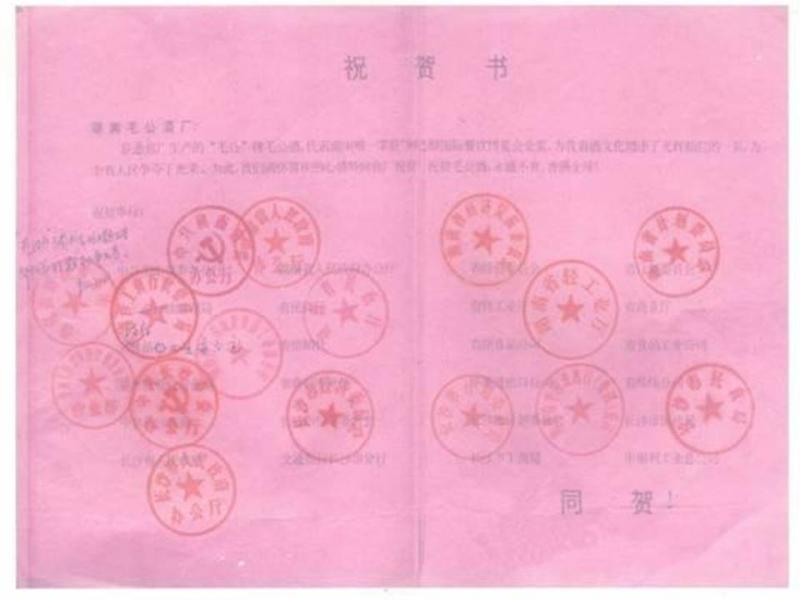 湖南省、长沙市相关政府部门对毛公酒获得“巴黎博览会金奖”致信祝贺。