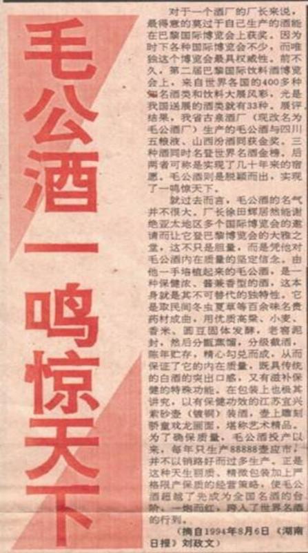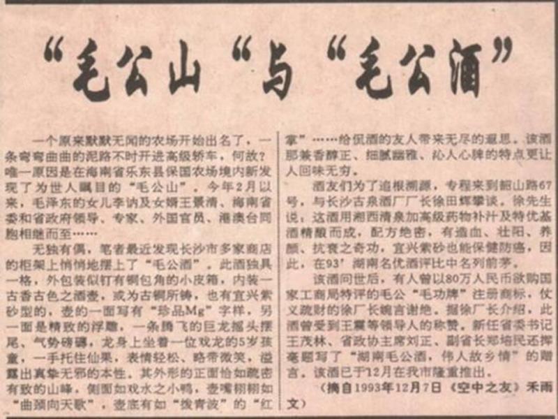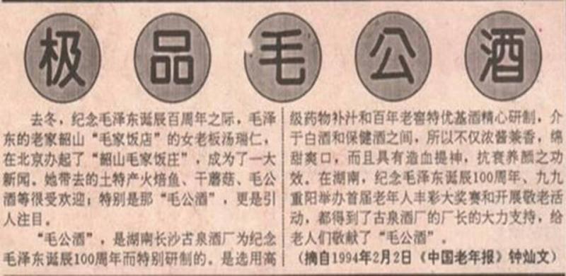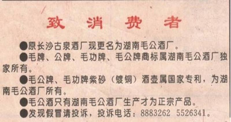 公司前身为长沙古泉酒厂,隶属长沙民政局。1994年4月20日变更为湖南毛公酒厂。
