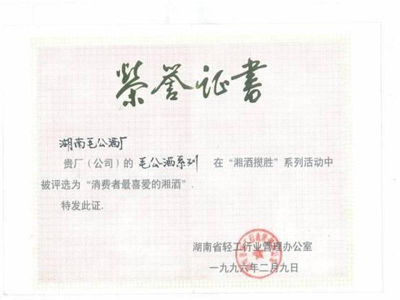 公司生产的系列产品,被评为“消费者最喜爱的湘酒”。为保护品牌正宗,打击假冒伪劣,公司在政府有关部门的帮助下,申请了商标专利。